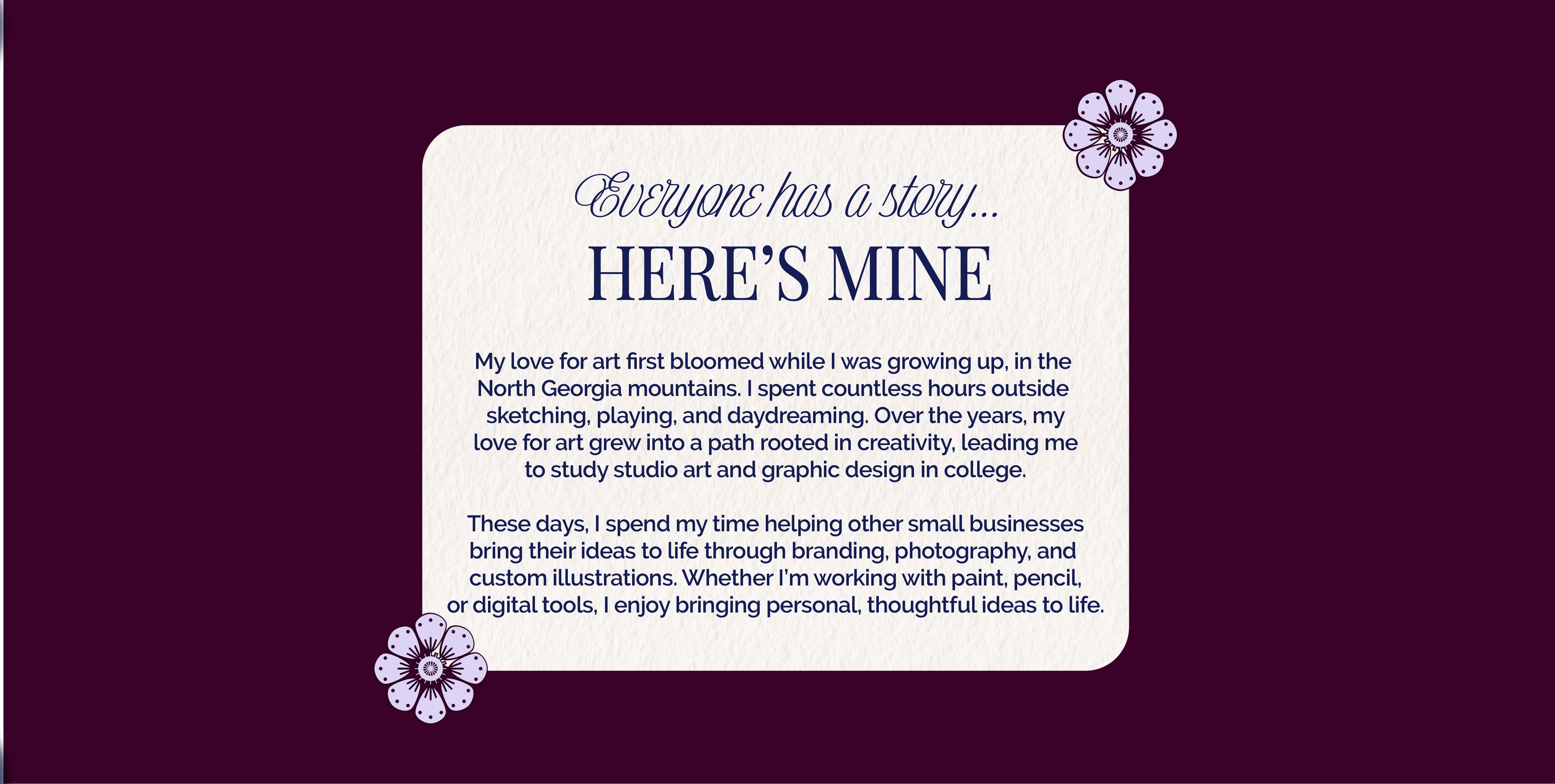 Custom branding and illustration for small businesses, couples, and creatives who want something truly their own is my specialty. Every project is tailored to you...your story, style, and vision. Thoughtful, hand-crafted design that helps you stand out. I’ll bring your ideas to life.
